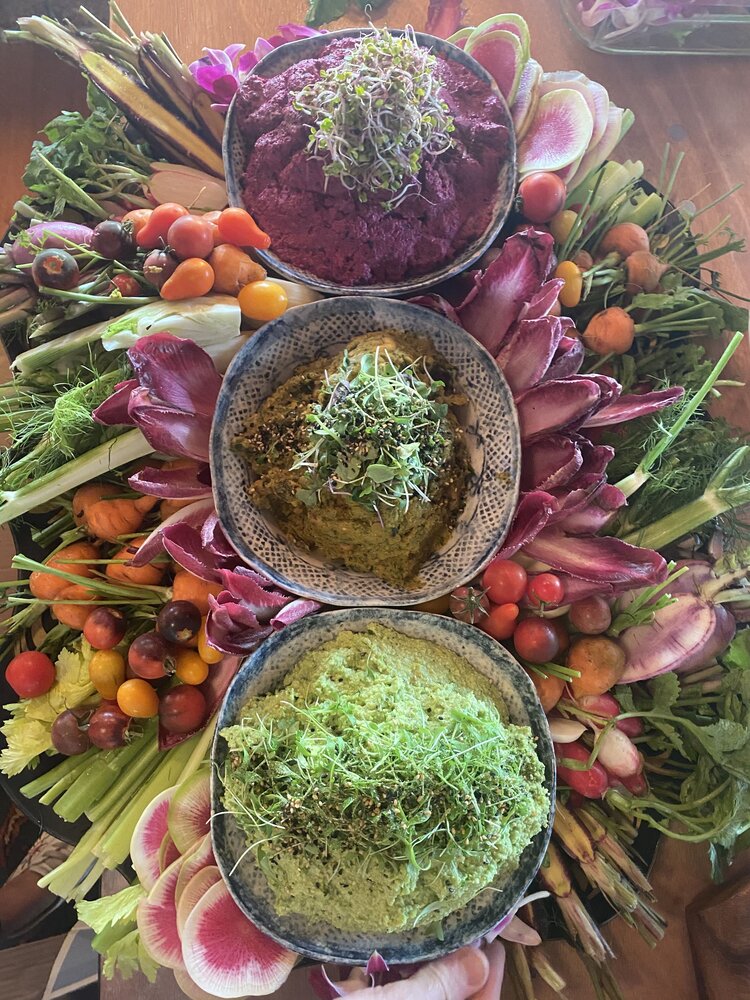 Rainbow crudité + colourful plant based dips are a signature dish at any Greenshaker event. It’s the perfect nourishing grazing appetiser to tie guests over until the main event. It’s easy to prepare, as it can be made ahead, and gives your guests an extra dose of plant based goodness, without filling them up on bread and chips.